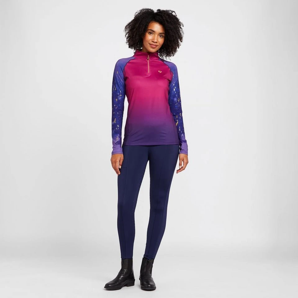 The Women’s Hudson Riding Tights from Aubrion offer flexibility and comfort thanks to their flatlock seam construction, with a supportive waistband and full silicone grips on the seat and legs for full stability in the saddle.